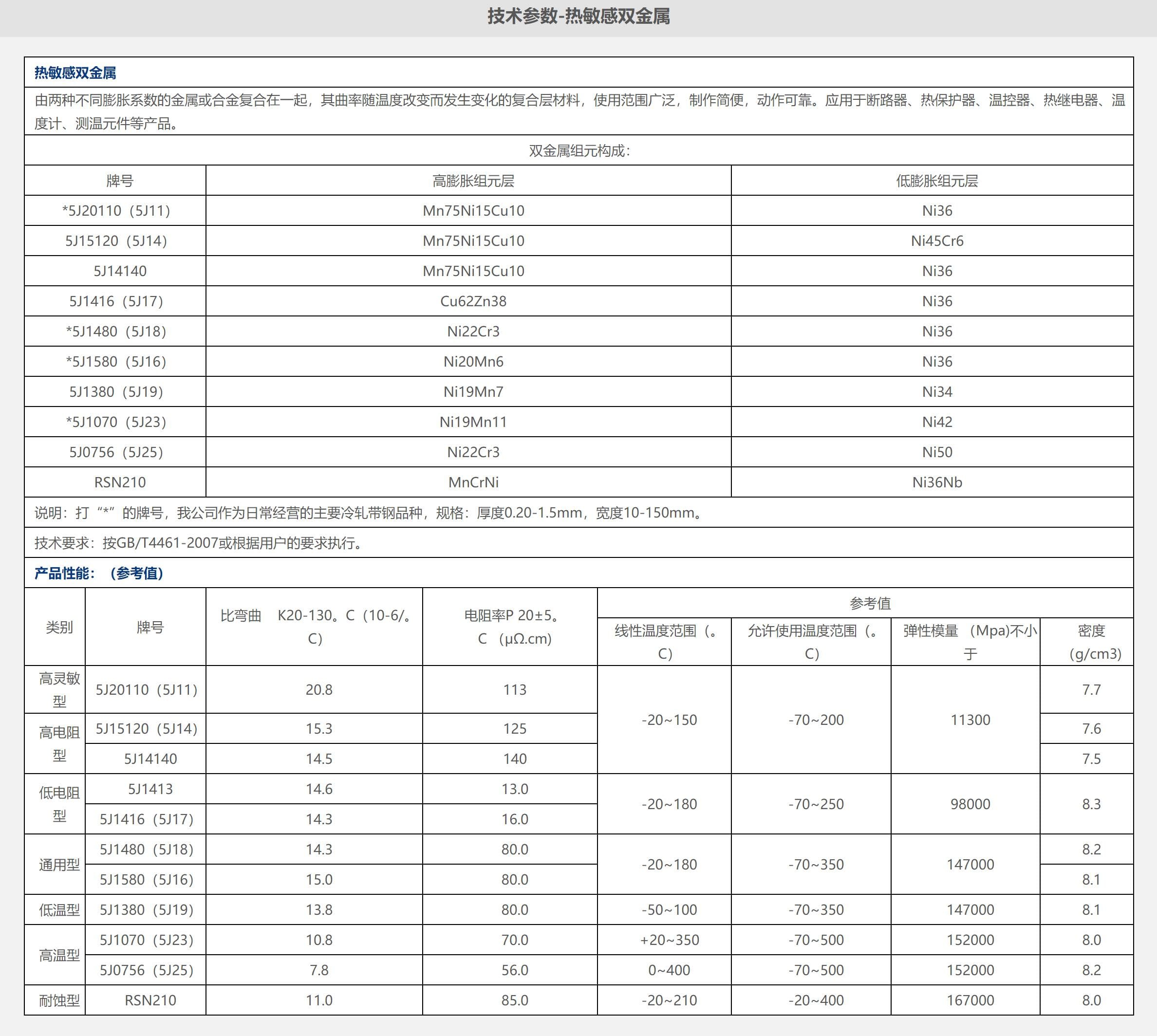技術(shù)參數(shù)-熱敏感雙金屬