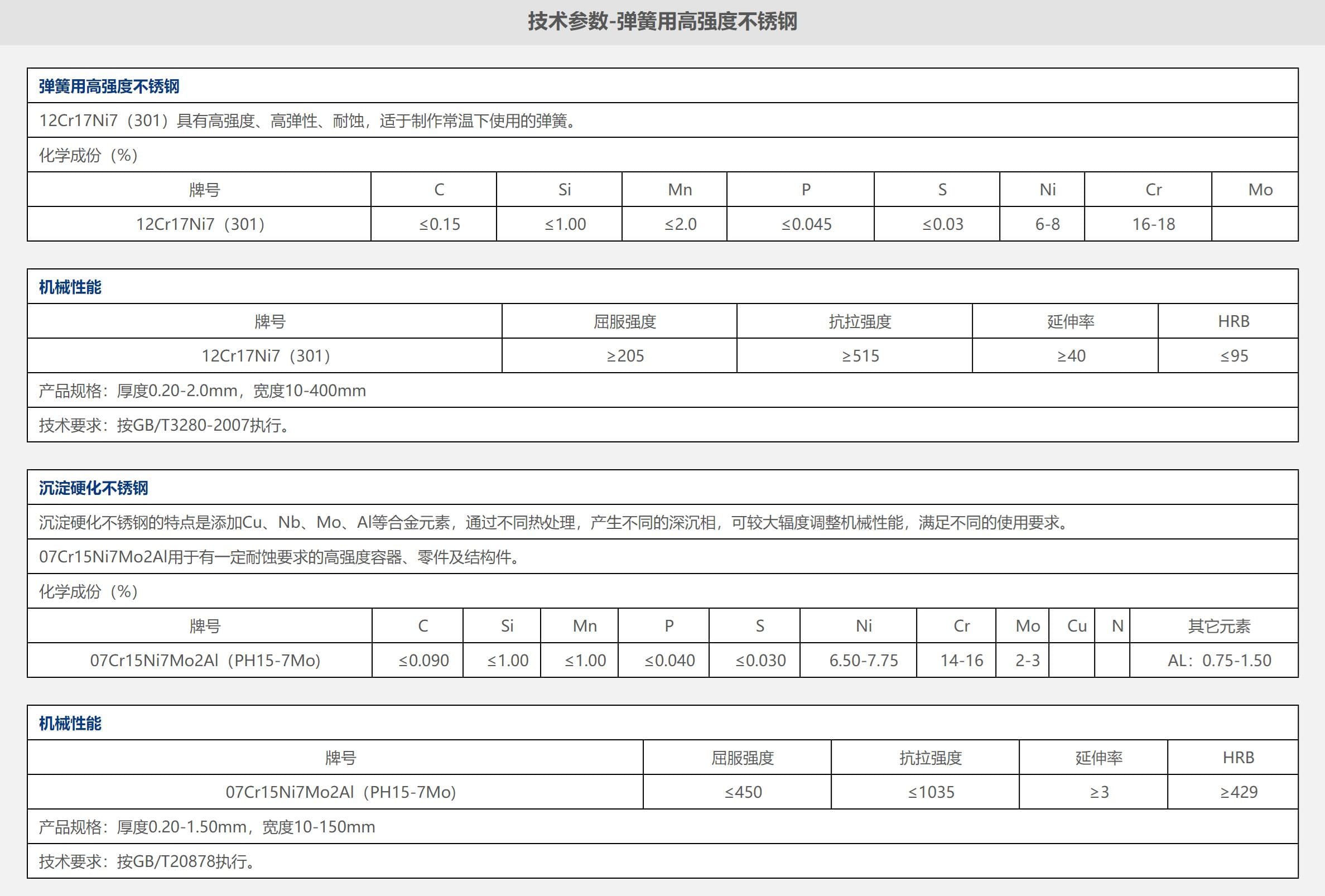 技術(shù)參數(shù)-彈簧用高強度不銹鋼