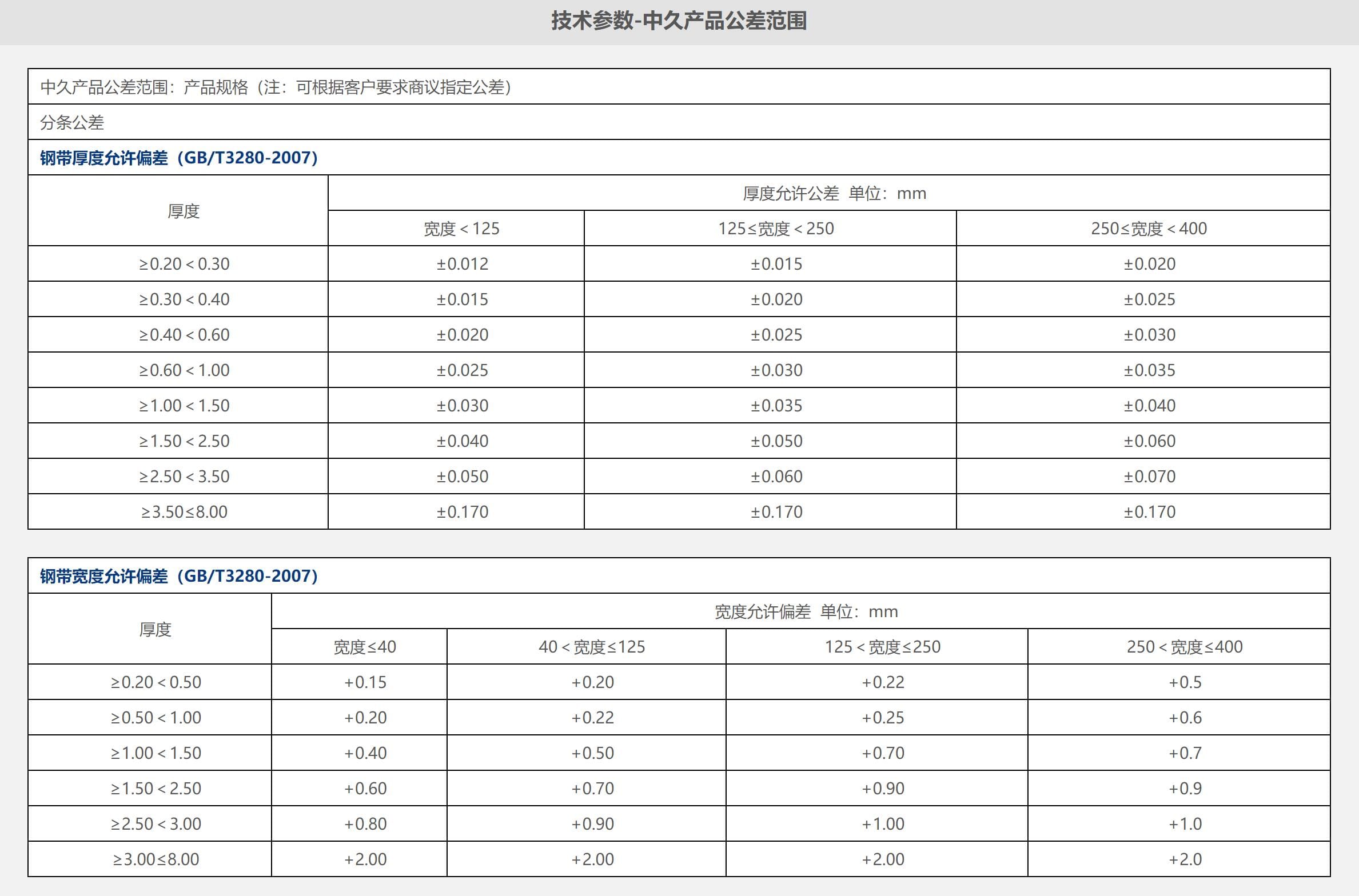 技術(shù)參數(shù)-中久產(chǎn)品公差范圍