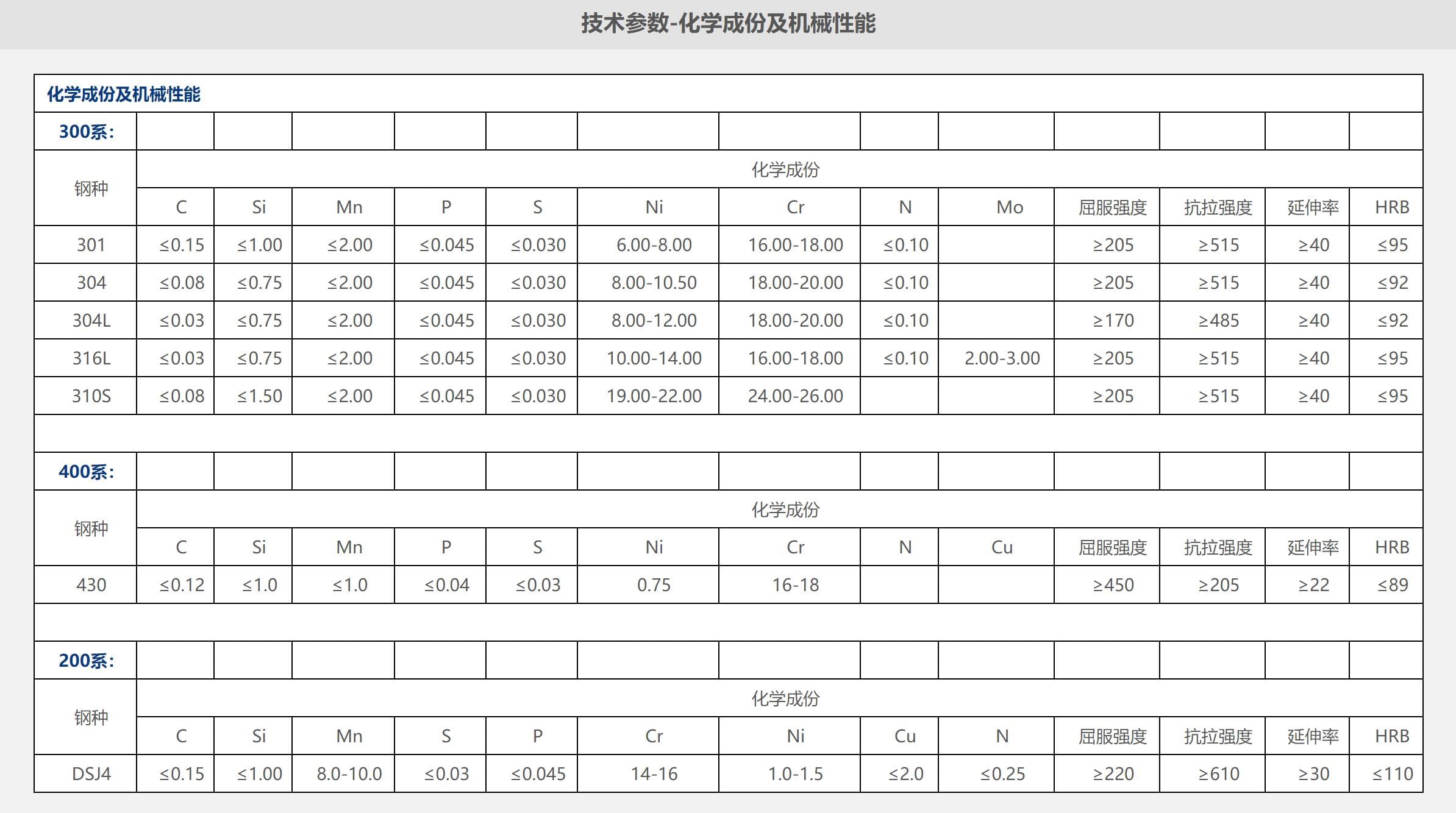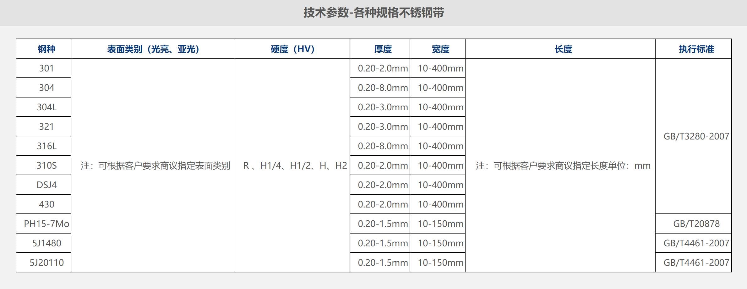 技術(shù)參數(shù)-各種規(guī)格不銹鋼帶